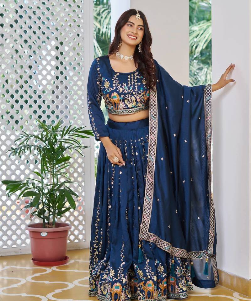 | Product Name | Blue Color Embroidery Sequence With Thared Work Silk Lahenga Choli Set | |