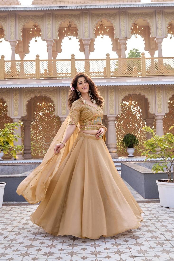 | Product Name | Chikoo Color Embroidery Moti With Sequence & Thred Work Silk Lahenga Choli Set | |