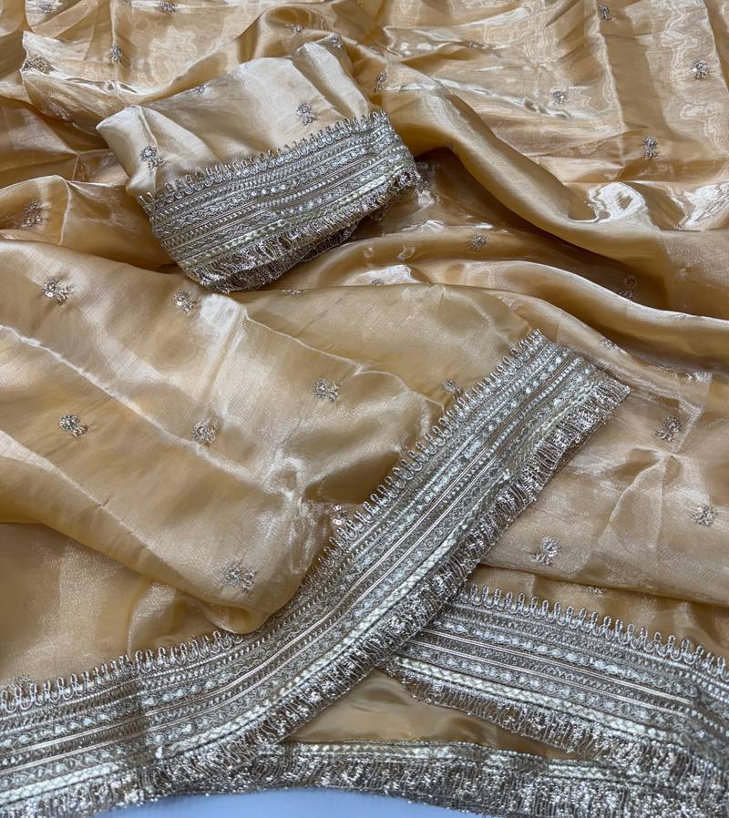 | Product Name | Cream Color Sequence Embroidery Work Satin Saree | |