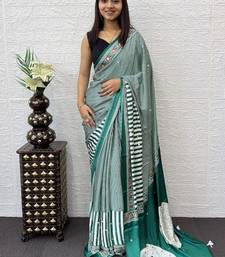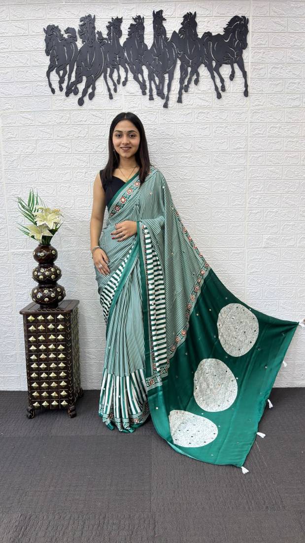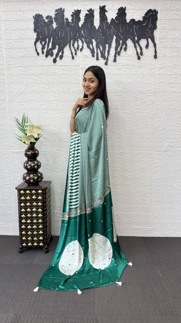 Green Color eal Mirror Hand Work with Mal Cotton Saree