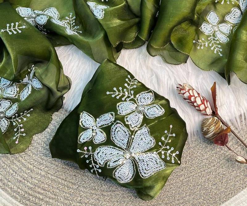 | Product Name | Green Color Embroidery Sequence Work Organza Saree | |