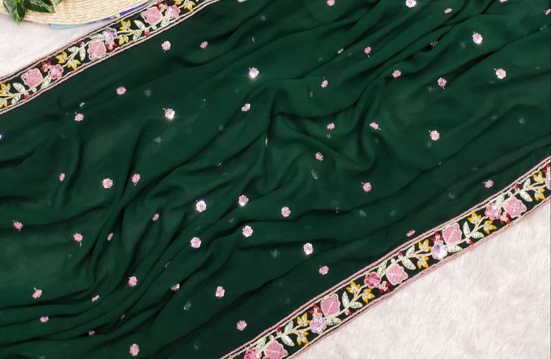 Green color sequence embroidery work georgette saree