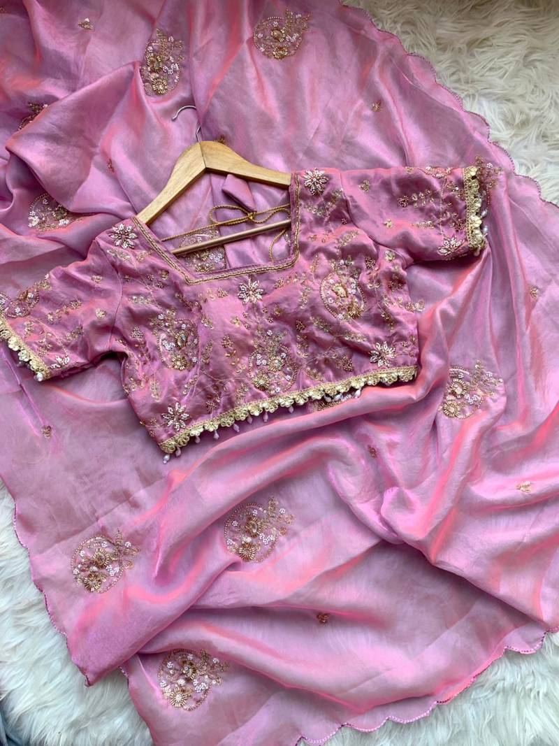 | Product Name | Light Pink Color Embroidery Beats Work Space Silk Saree | |