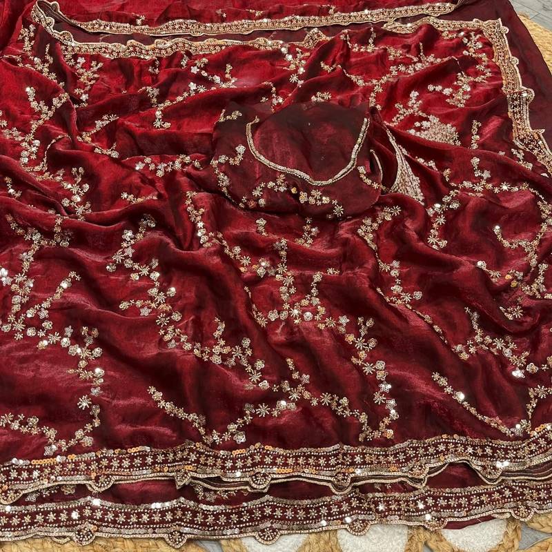 | Product Name | Maroon Color Gold Beeds Work With Cut Work Border Silk Saree | |