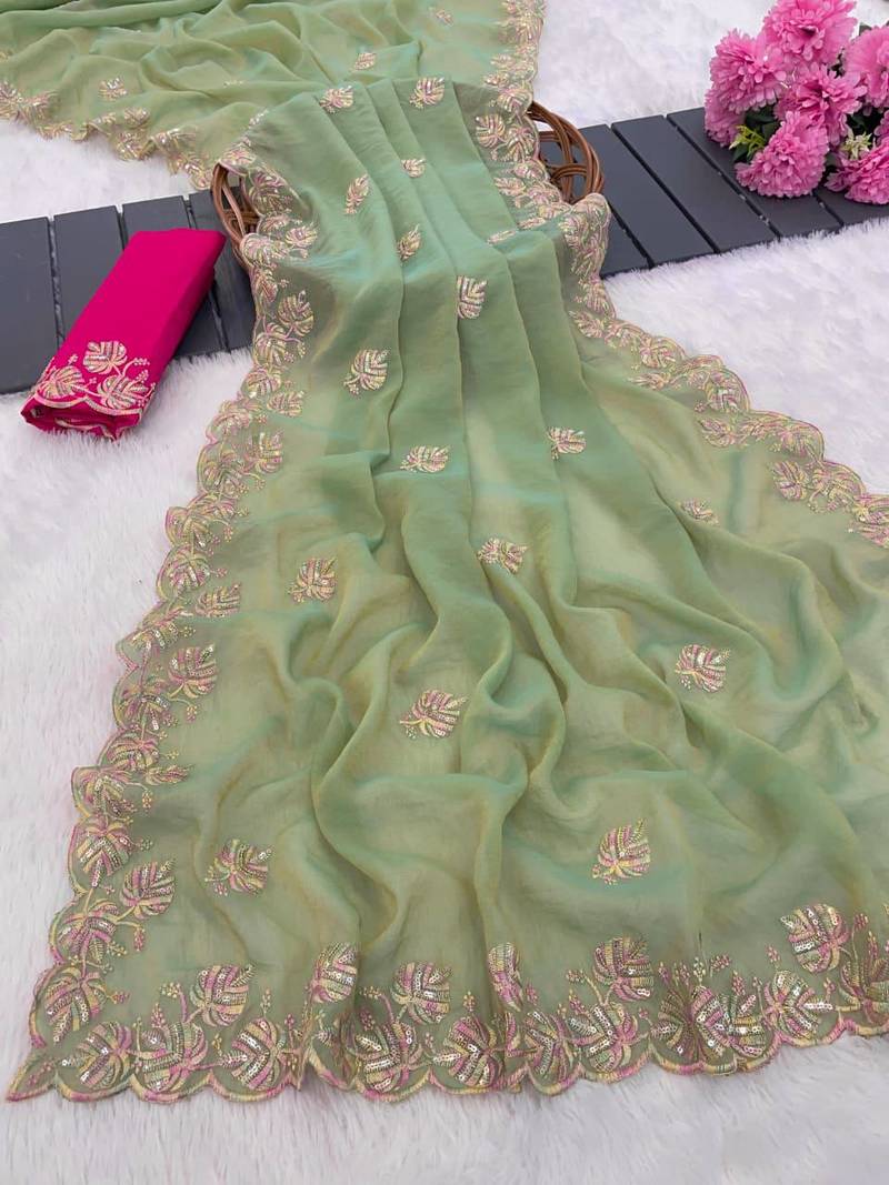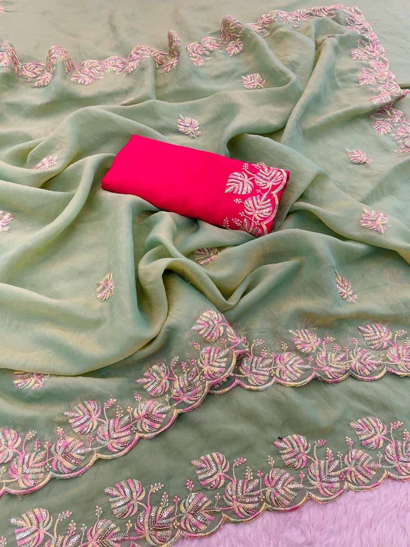 | Product Name | Mint Color Sequnce With Multi Thread Work With Cut Work Border Chiffon Saree | |