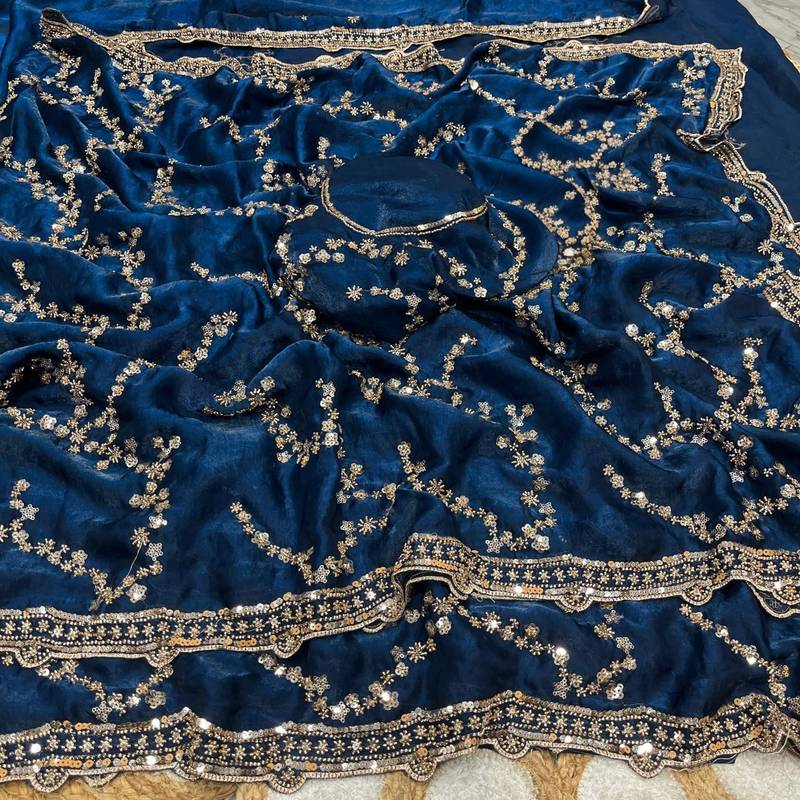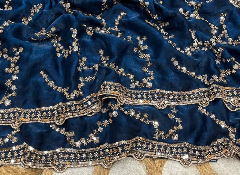 | Product Name | Nevy Blue Color Gold Beeds Work With Cut Work Border Silk Saree | |