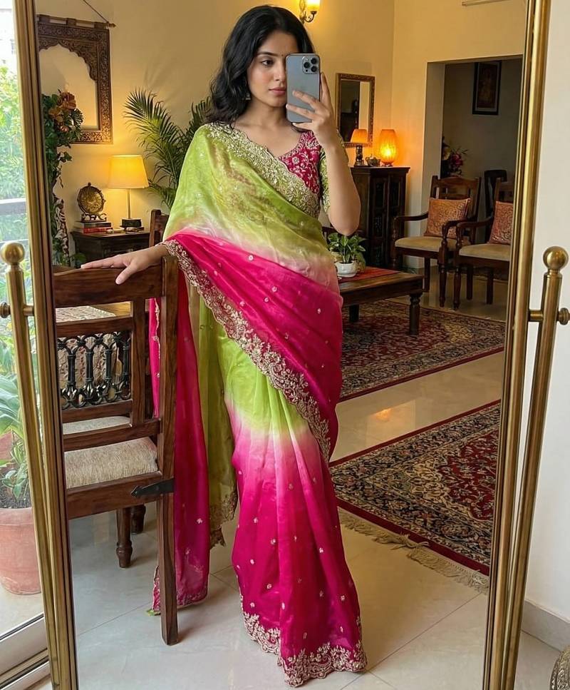 | Product Name | Olive Color Embroidery Sequence Work Fendy Satin Saree | |