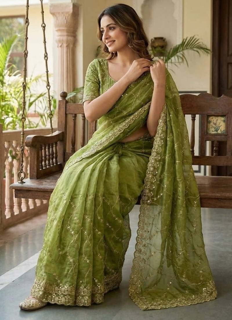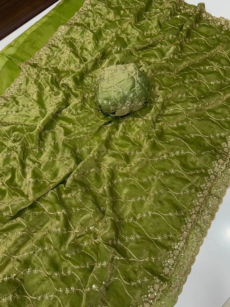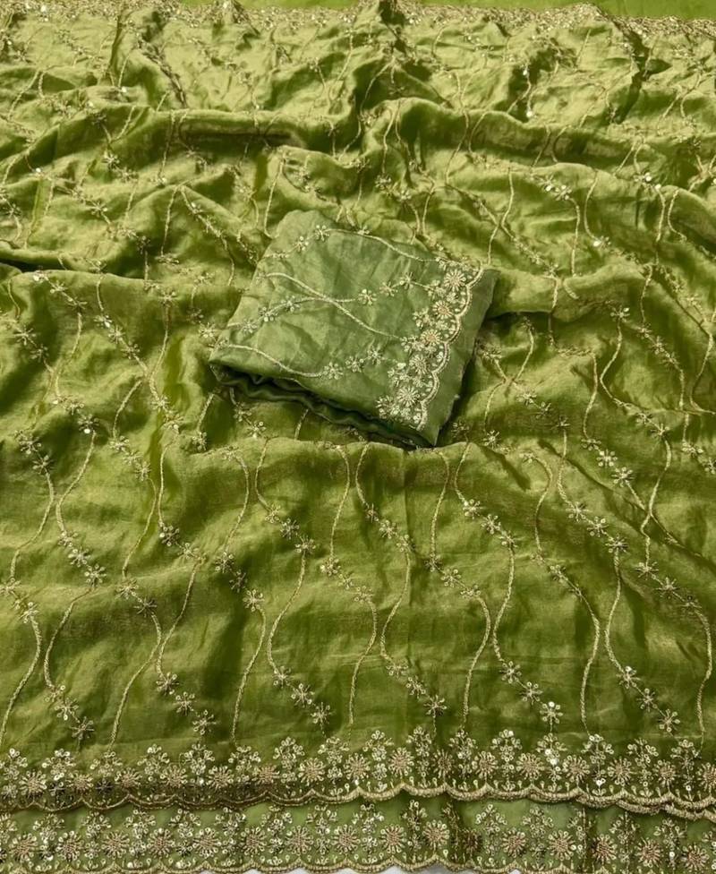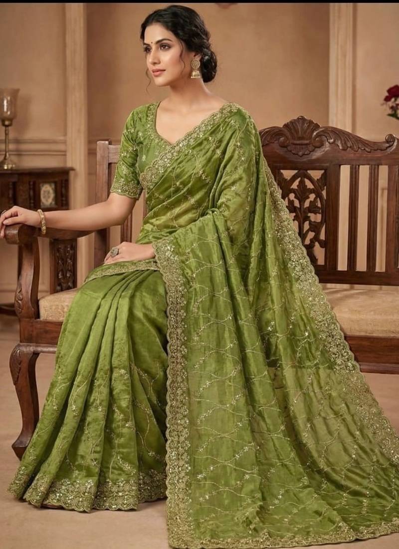 | Product Name | Olive Color Sequence Embroidery Work With Cut Work Border Silk Saree | |