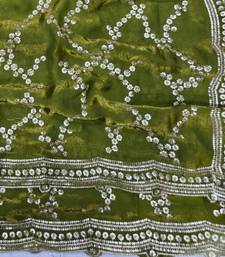 Olive color sequence work silk saree