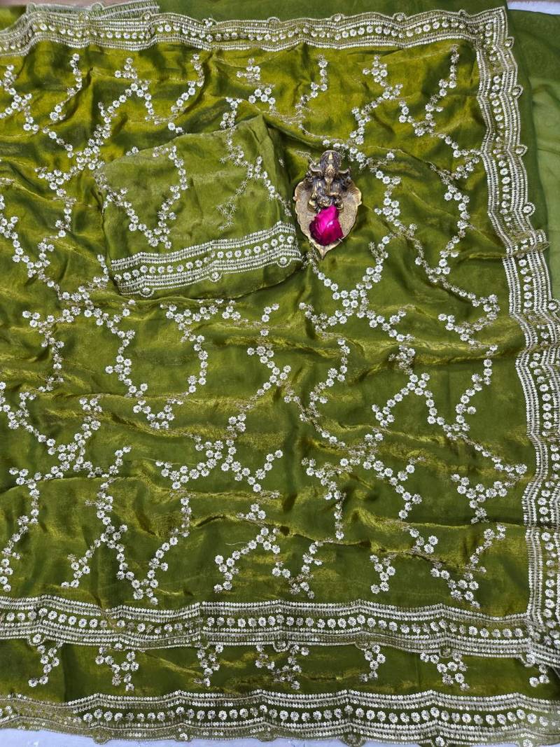 | Product Name | Olive Color Sequence Work Silk Saree | |