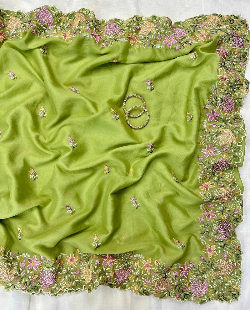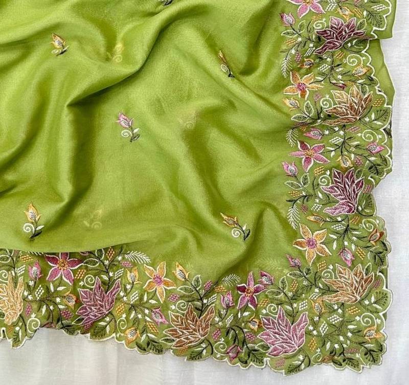 | Product Name | Parrot Green Color Multi Thread Embroidery Cut Work Georgette Saree | |