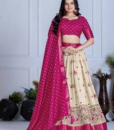 Pink color jari lining with print lichi fabric with jacquard border lehanaga choli set