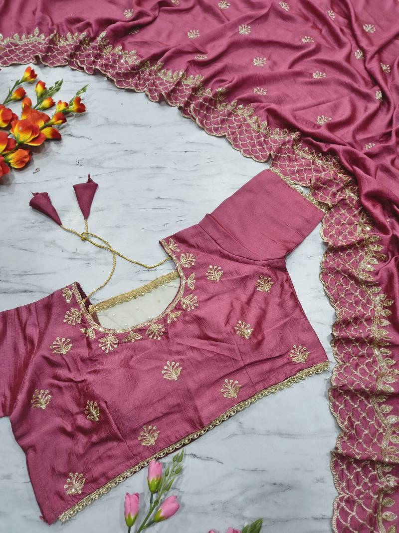 | Product Name | Pink Color Thread Embroidery And Sequins Work Vichitra Silk Saree | |