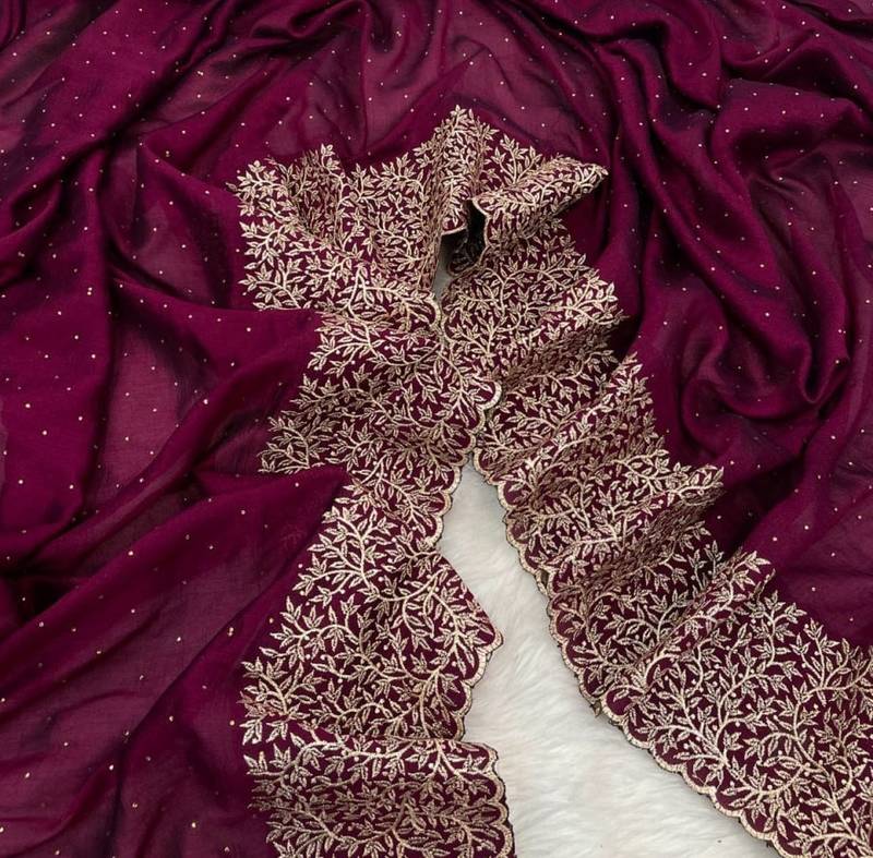 | Product Name | Plum Color Silk Fabric Zari Work And Stone Work Saree | |
