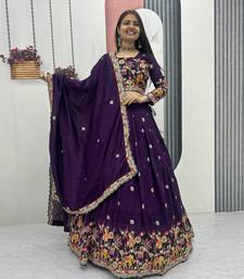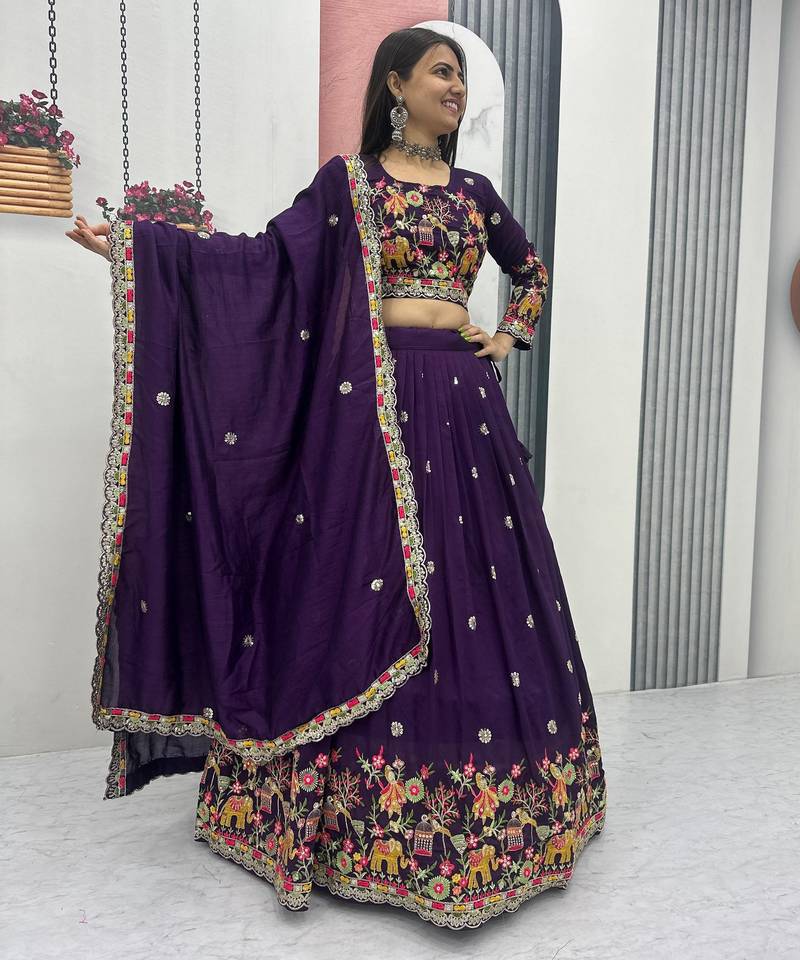 | Product Name | Purple Color Embroidery Coding Thread Chinon Lahenga Choli Set | |