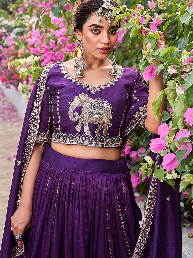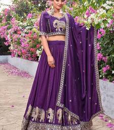 Purple color embroidery sequence work with thred work silk lahenga choli set