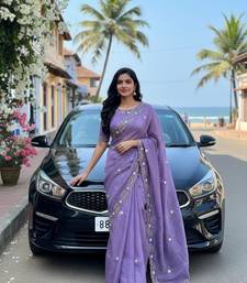 Purple color hand khatli and cutdana butta and heavy border aarco silk saree