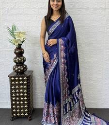 Purple color mirror work satin saree