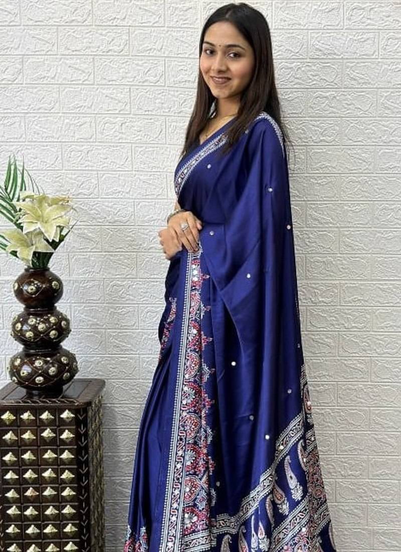 5. Mirror Work Satin Saree