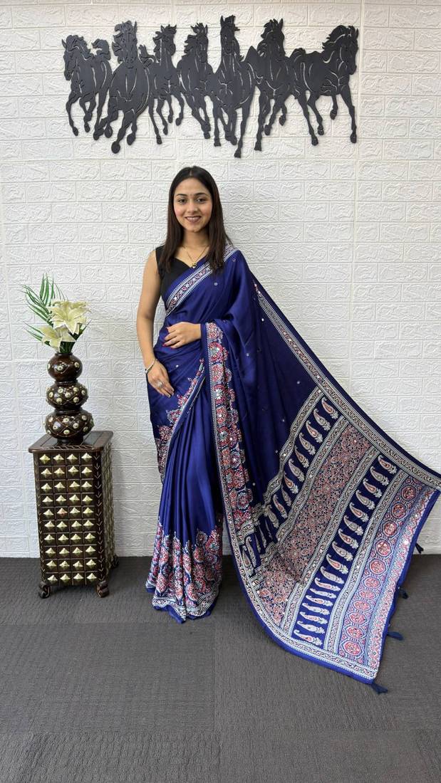 Type Satin Sarees , Mirror Work