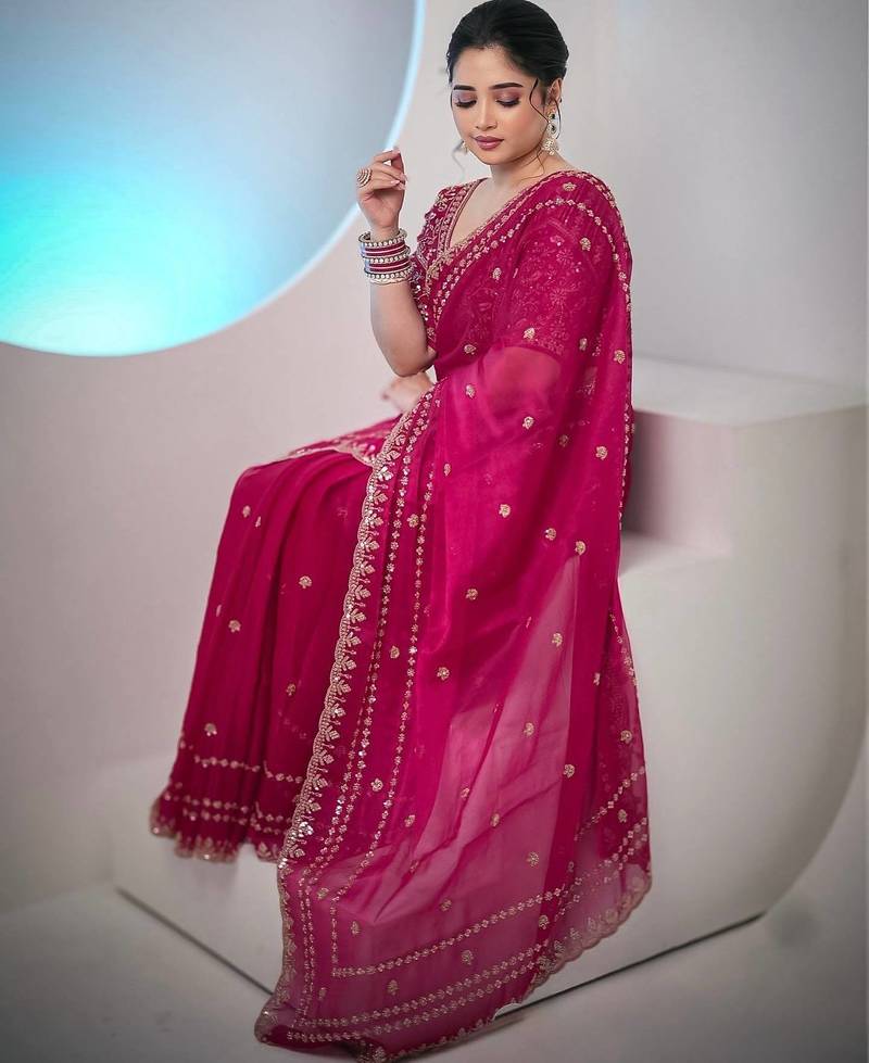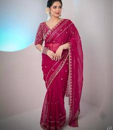 | Product Name | Rani Pink Color Jari Dori Thread Embroidery Work Velvet Saree | |