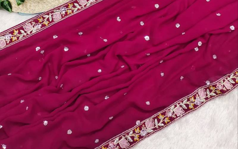 Rani pink color sequence embroidery work georgette saree