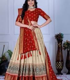| Product Name | Red Color Acquard With Jari Lining With Print Work Silk Lhenga Choli Set | |