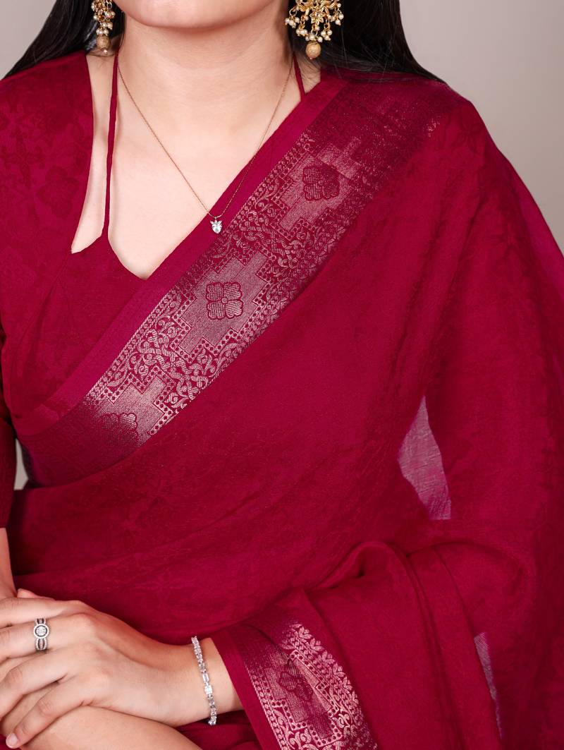 | • | Saree | : | Color- Red / Fabric- Silk Blend |