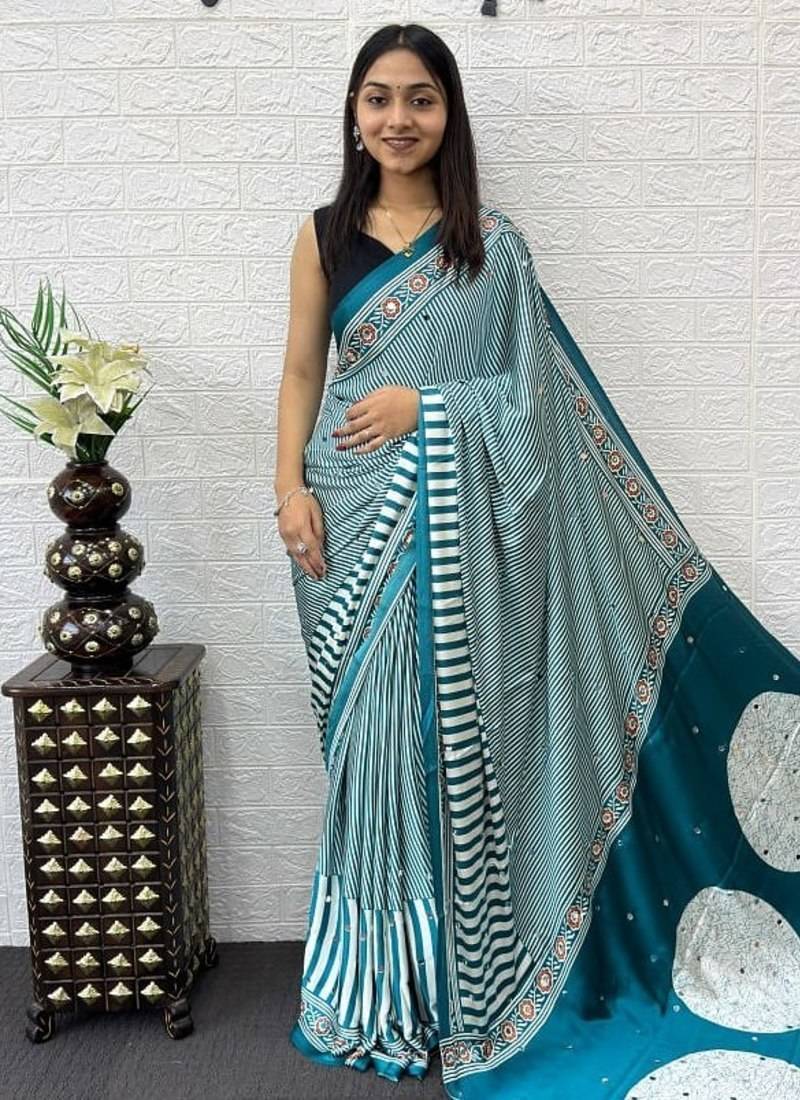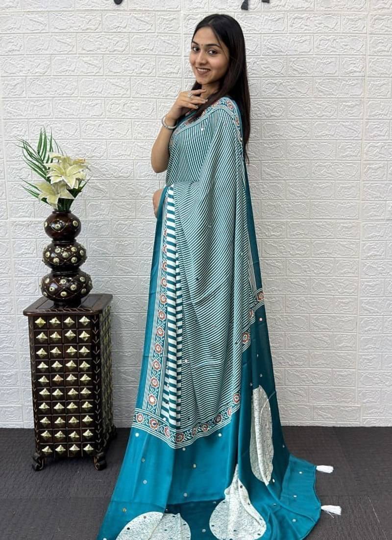 | Product Name | Teal Color Eal Mirror Hand Work With Mal Cotton Saree | |
