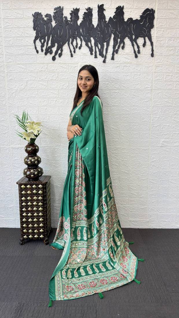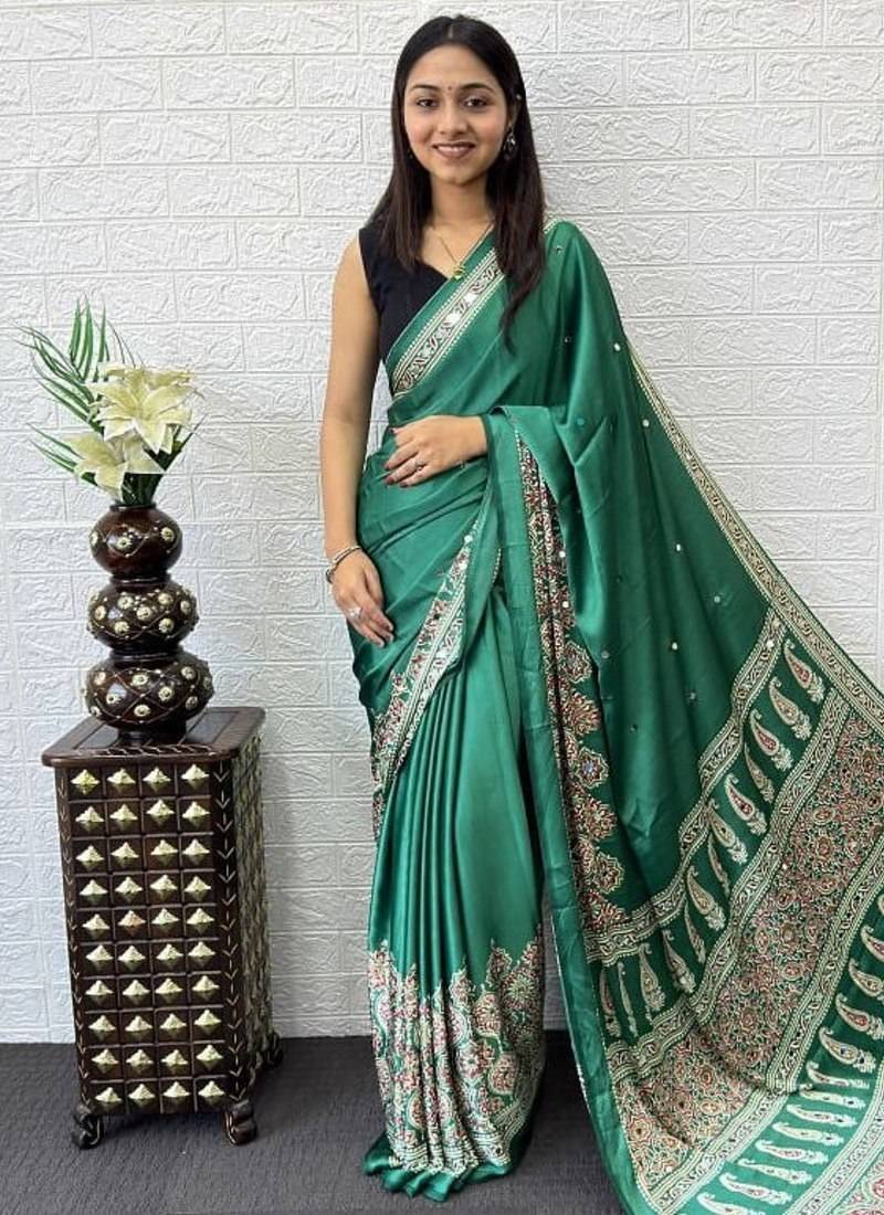 | Product Name | Teal Color Mirror Work Satin Saree | |