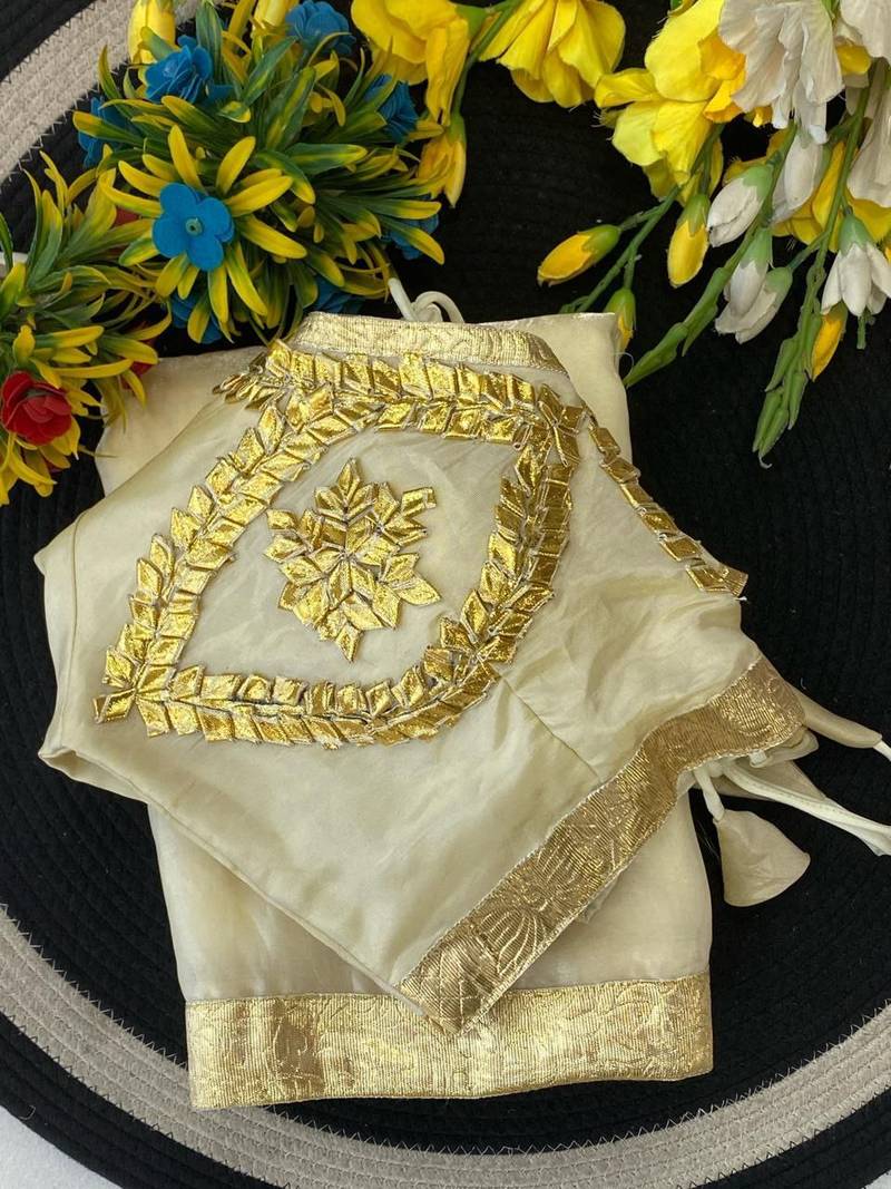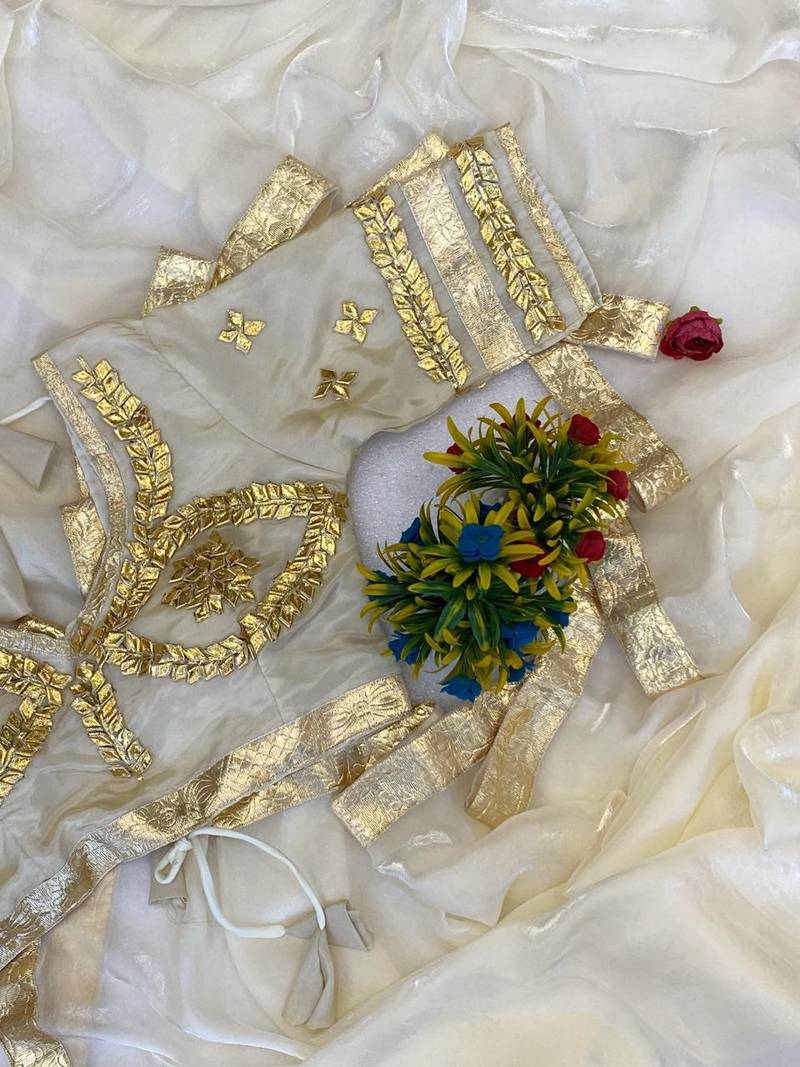 | Product Name | White Color Gota And Self Design Gota Patta Touch Up Work Satin Saree | |