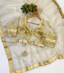 White color gota and self design gota patta touch-up work satin saree
