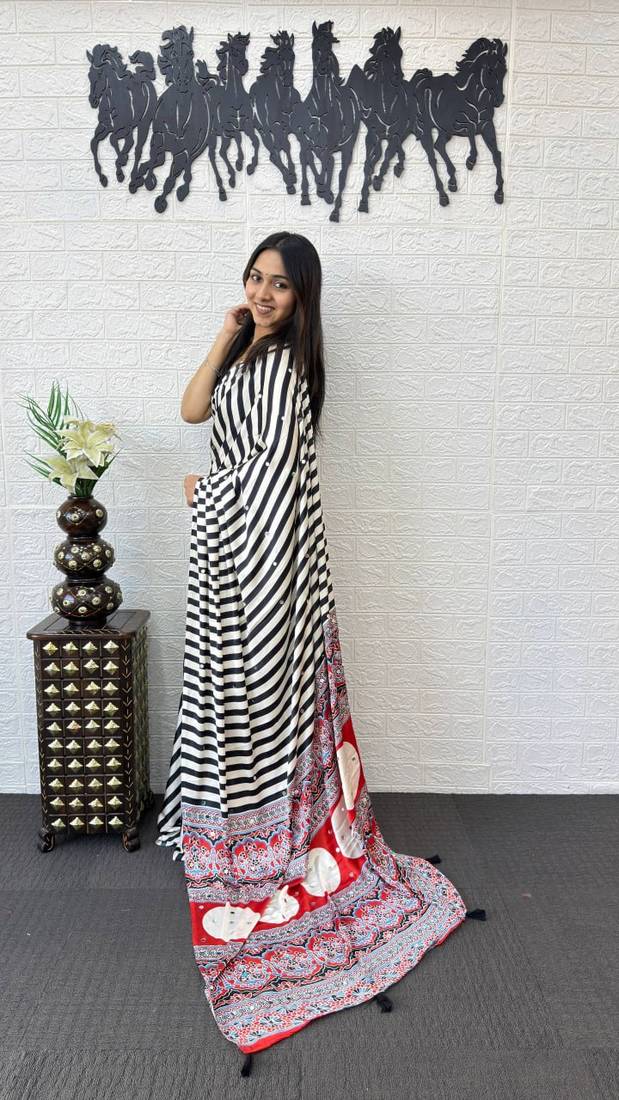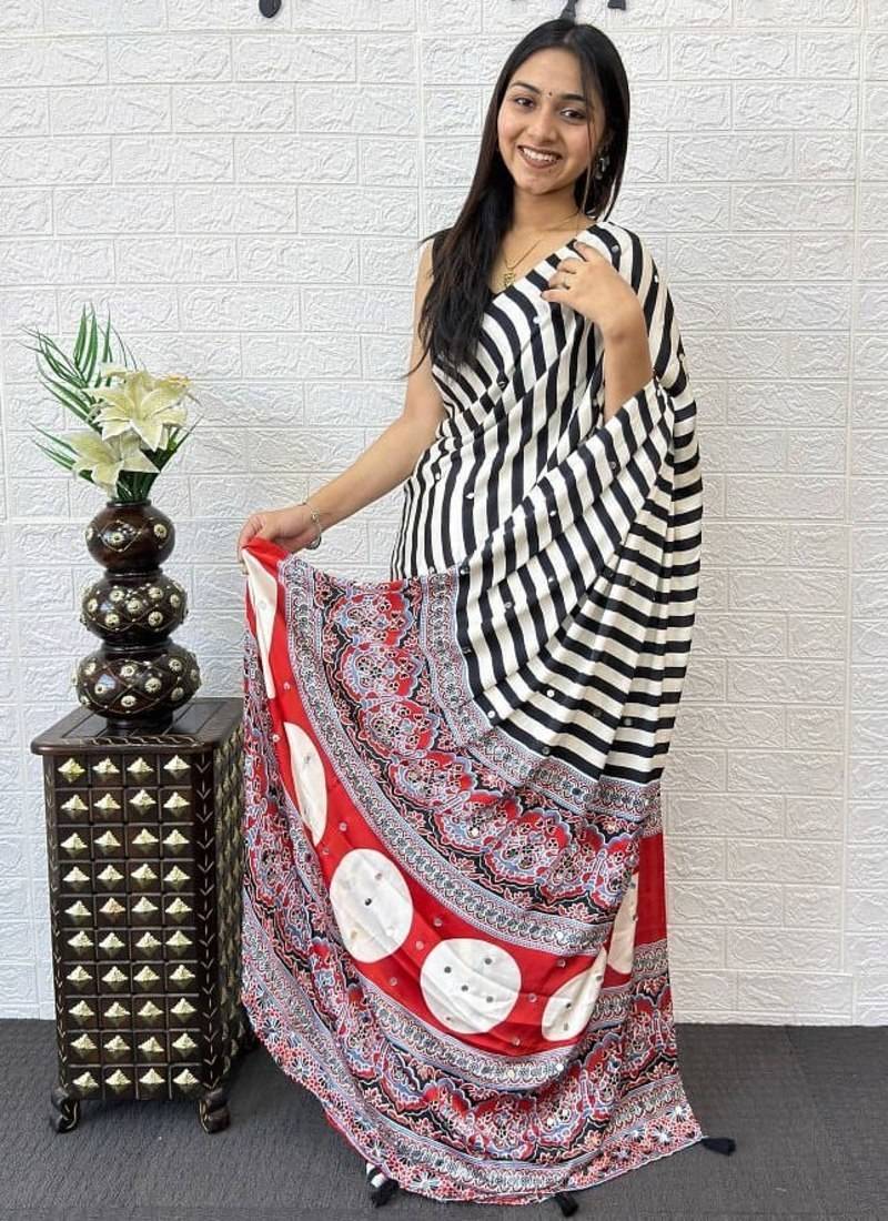 Work: Heavy Mirror Work With Elegant Viscose Latkan Pallu Border