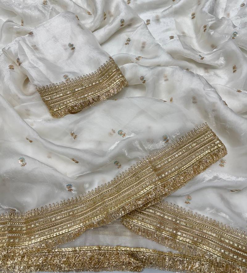 | Product Name | White Color Sequence Embroidery Work Satin Saree | |