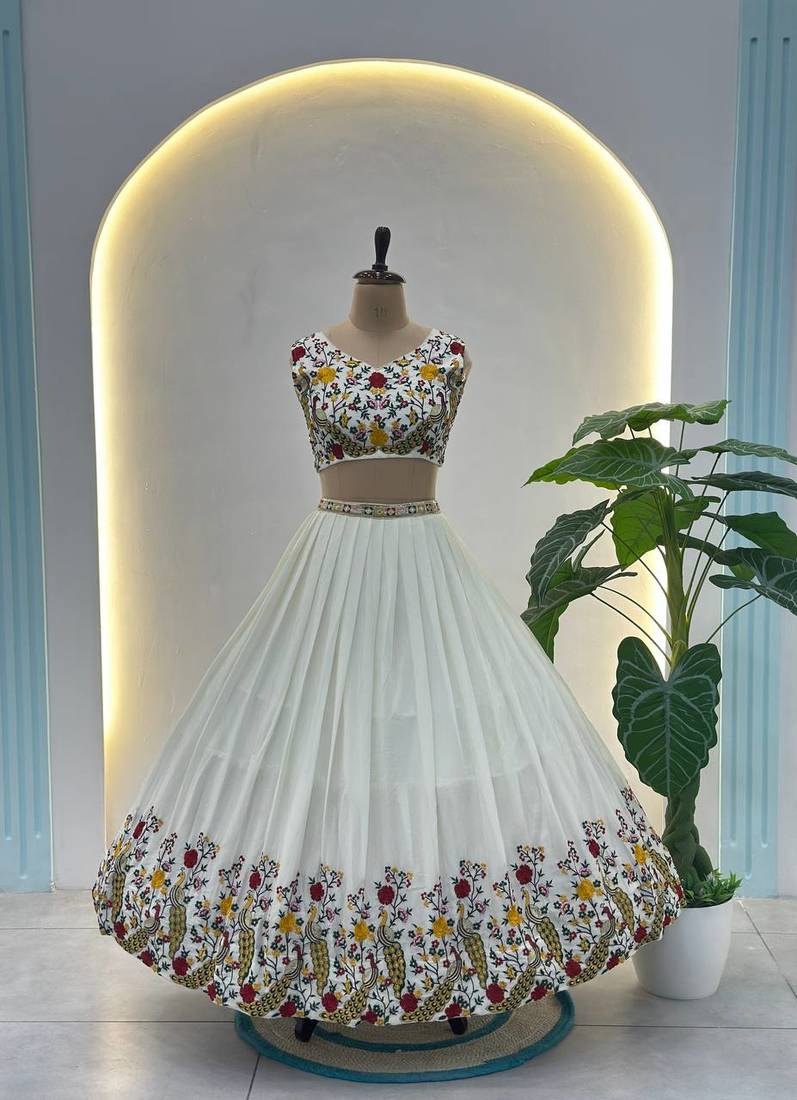 | Product Name | White Color Sequins And Thread Embroidery Work Chinon Silk Lahenga Choli Set | |