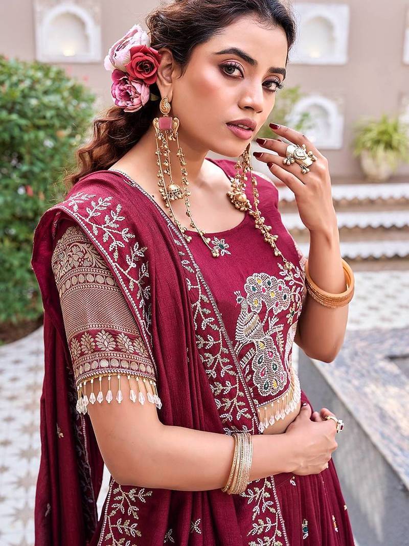 Wine Color Embroidery Sequence with Thared Work  Silk Lahenga Choli Set