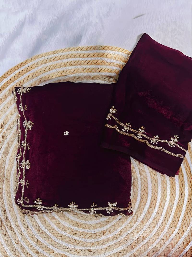 | Product Name | Wine Color Sattin Handwork Saree | |