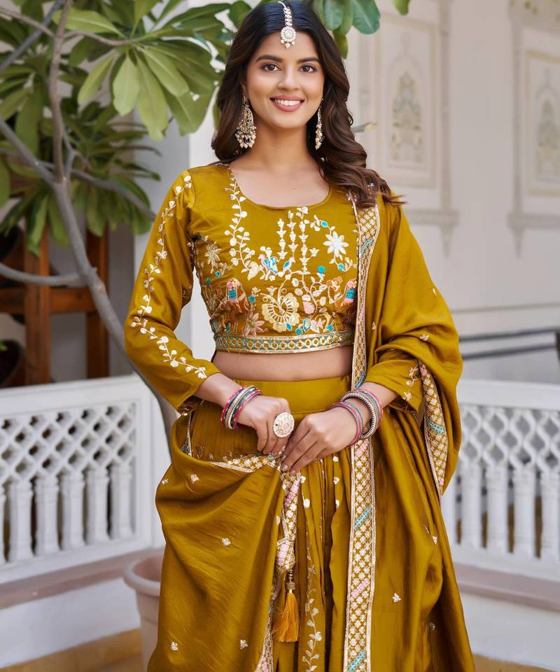 | Product Name | Yellow Color Embroidery Sequence With Thared Work Silk Lahenga Choli Set | |