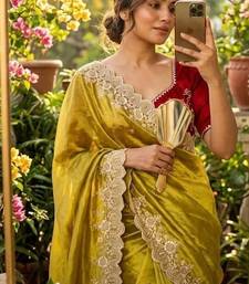 | Product Name | Yellow Color Embroidery Thread Work Tissue Organza Saree | |