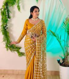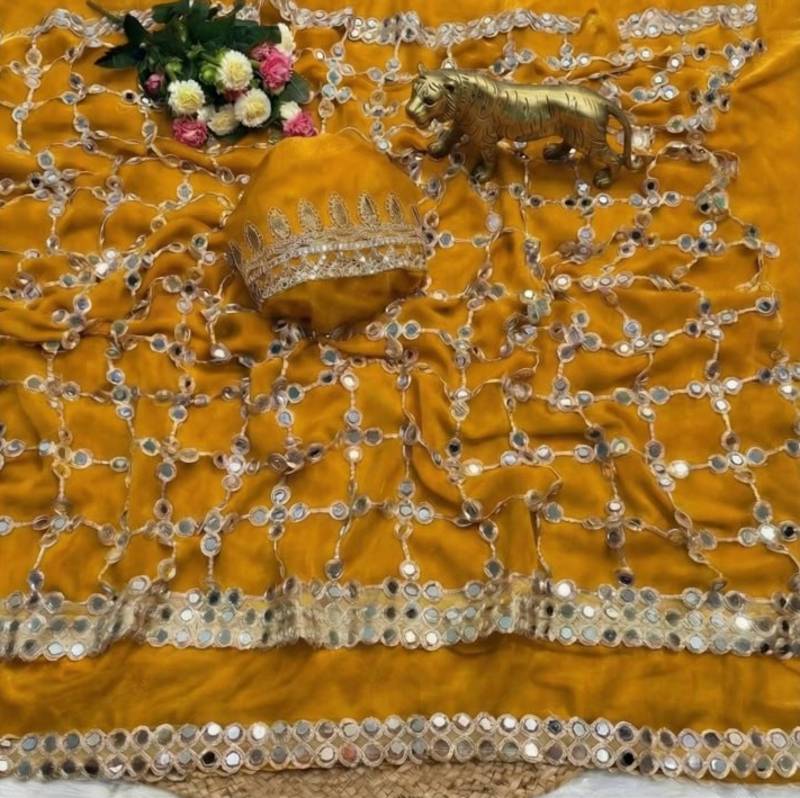 | Product Name | Yellow Color Real Mirror Work Lace Satin Silk Saree | |