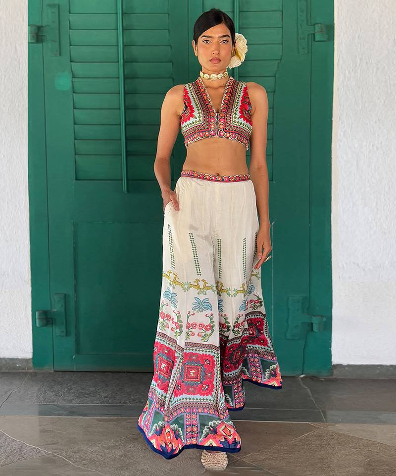 Off-white embroidered chiffon co ord set