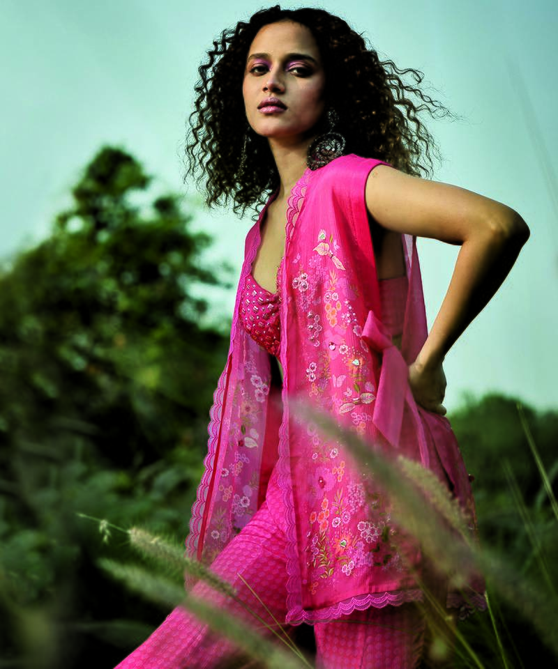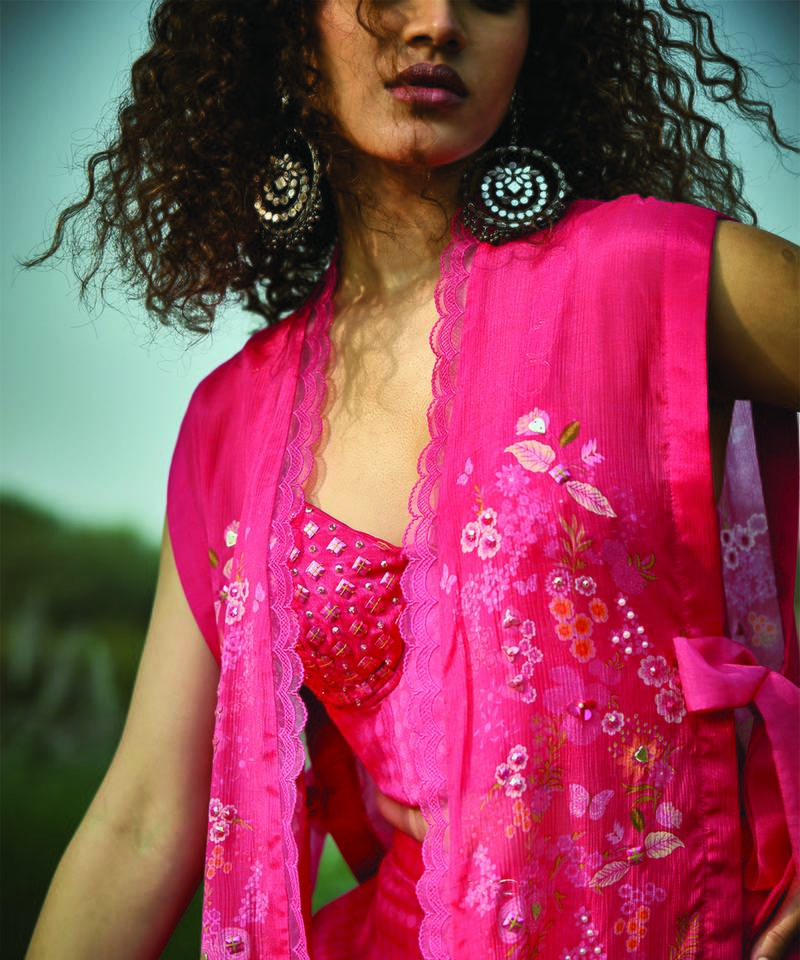 Pink embroidered chiffon co ord set