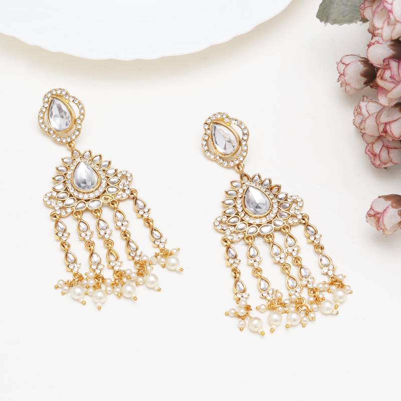 Abhika Creations Mirror Work Statement Dangler Earrings With Pearl Fringe