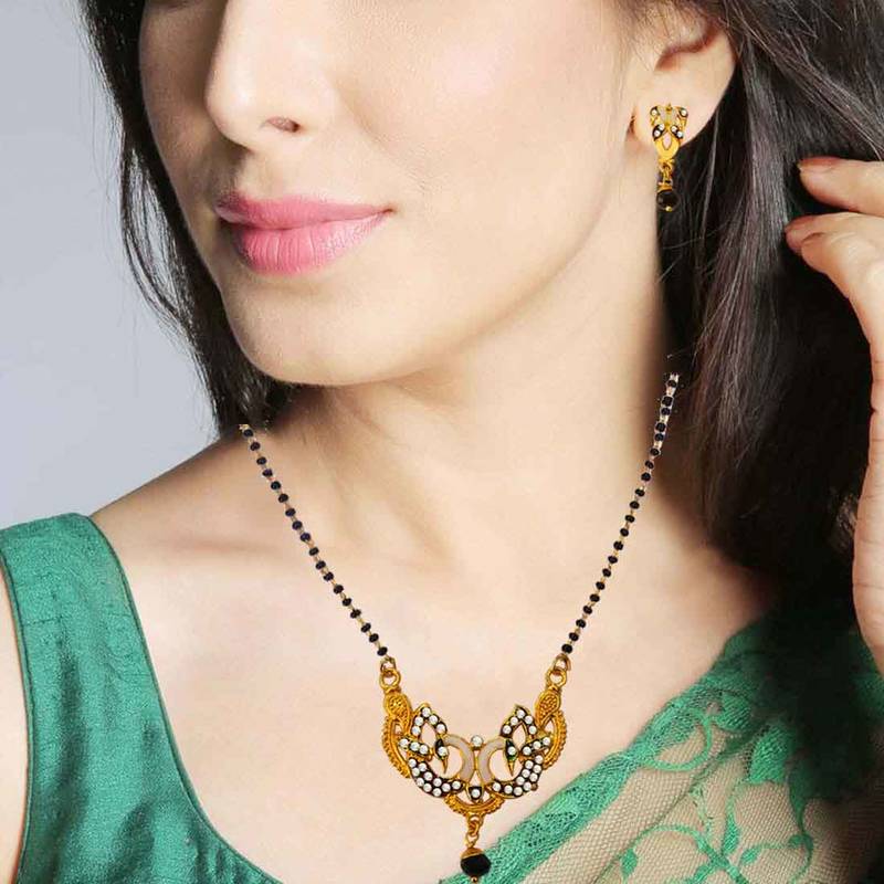 Traditional Ethnic Gold Plated Black Bead Chain Designer Mangalsutra Perfect For All Occasions. A Perfect Gift For All Occasions And For Your Wife & Everyone In Your Life Including Yourself.Beingwomen Collection Gratifies To The Need Of The Indian Woman, Traditional At Heart But At The Same Time Stylish And Contemporary In Its Designs.From The Past One Decade, Beingwomen Collection Is One Of The Leading Manufacturers Of Fashion Jewellery In India. We Have Exclusive Collection Of Jewellery For All Occasions And Festivals, Varied From Ethnic, Bridal And Ritual Wear To Casual, Formal, Semiformal, Corporate Wear, Every Day Wear, Bollywood Line And Many More. The Brand Provides Fashion Jewellery, In Line With Global Trends, At Affordable Prices. Designer Mangalsutra.Gold Plated Mangalsutra Stylish And Trendy Mangalsutras From The House Of Beingwomen, Perfect For All Occassions.