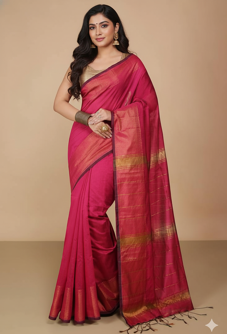 | Product Name | Pink Zari Border Checked Cotton Zori Blend Saree | |