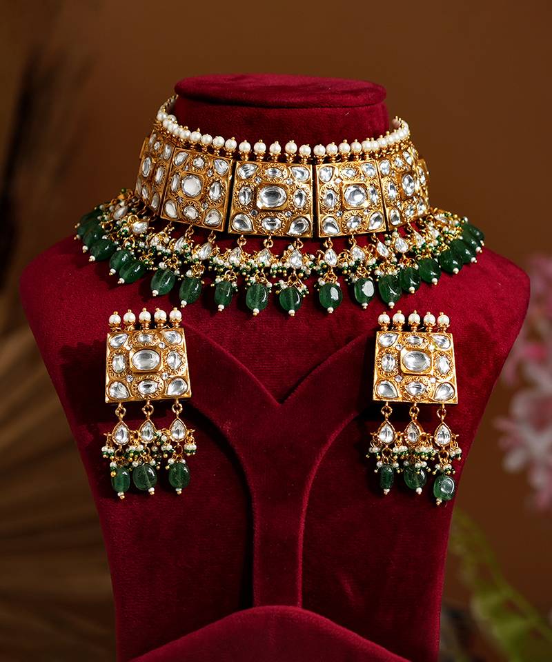 | Product Name | Gold Plated Green Stone Kundan Necklace Set | |