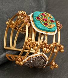 Gold Plated Blue Stones Bangle Is A Stunning Blend Of Traditional Elegance And Modern Charm. Crafted With Intricate Detailing And Highlighted With Rich Blue Stones, It Adds A Regal Touch To Any Ethnic Or Festive Look. Perfect For Weddings, Celebrations, And Special Occasions.