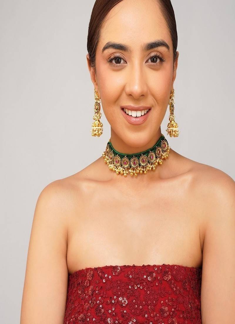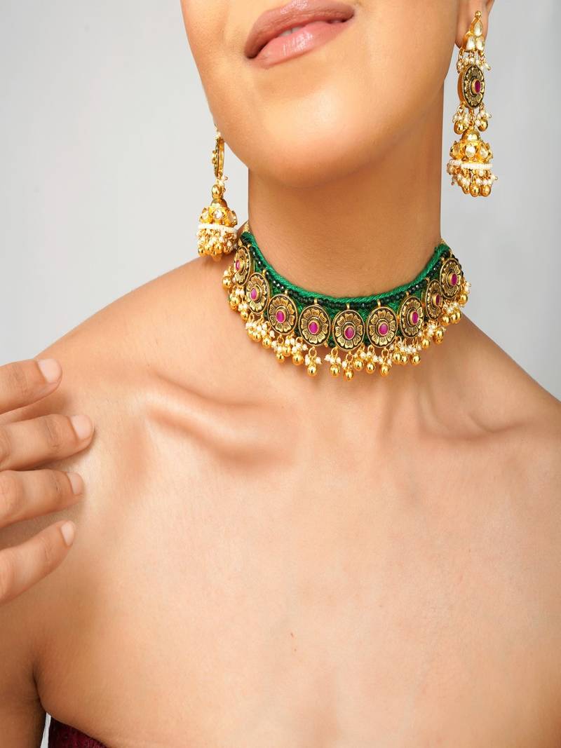 Product Name | Gold Plated Kundan Green Stone Choker Necklace Set | |