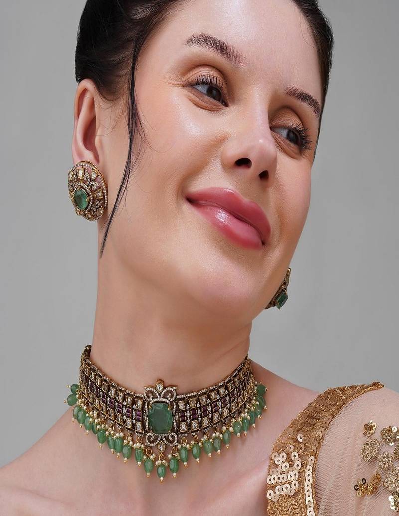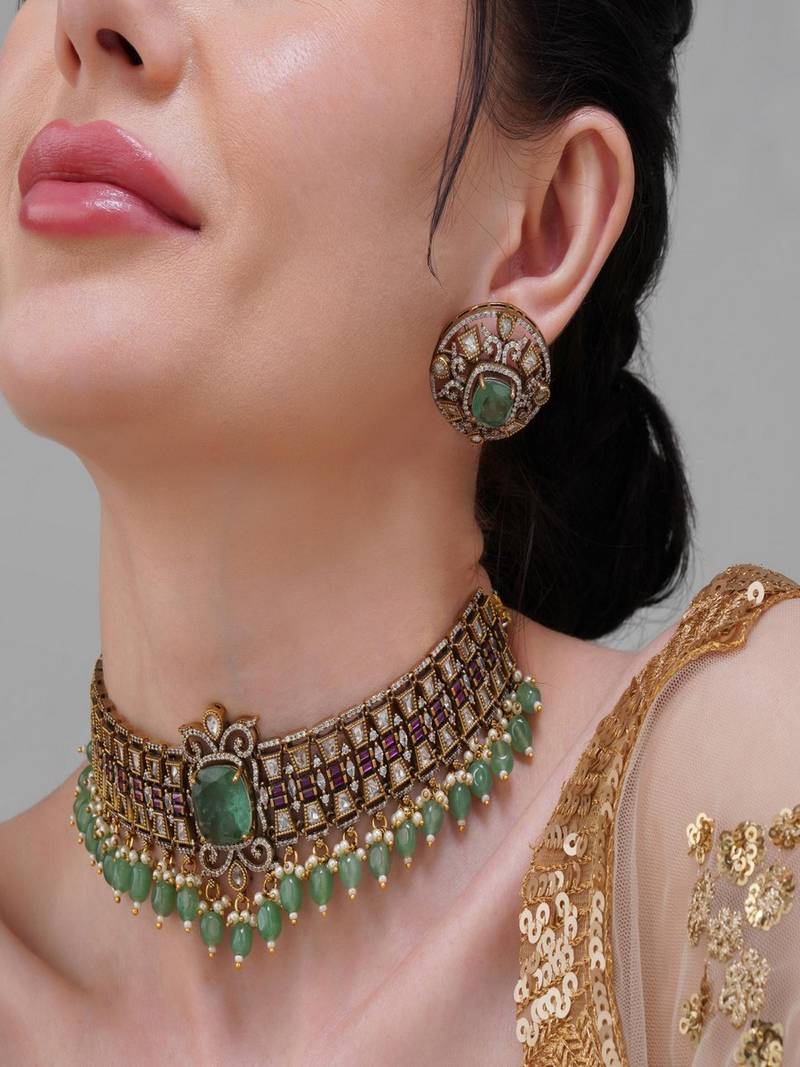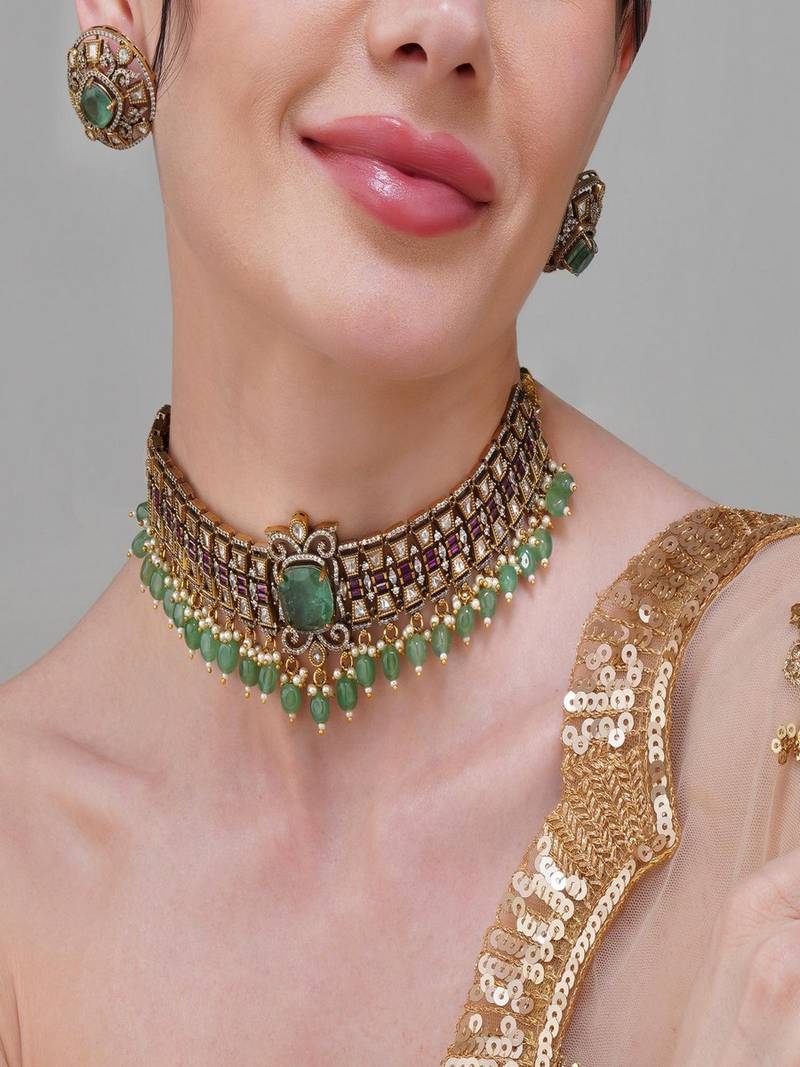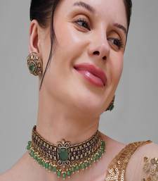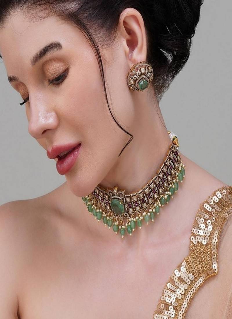 Product Name | Gold Plated Kundan Green Stone Choker Necklace Set | |