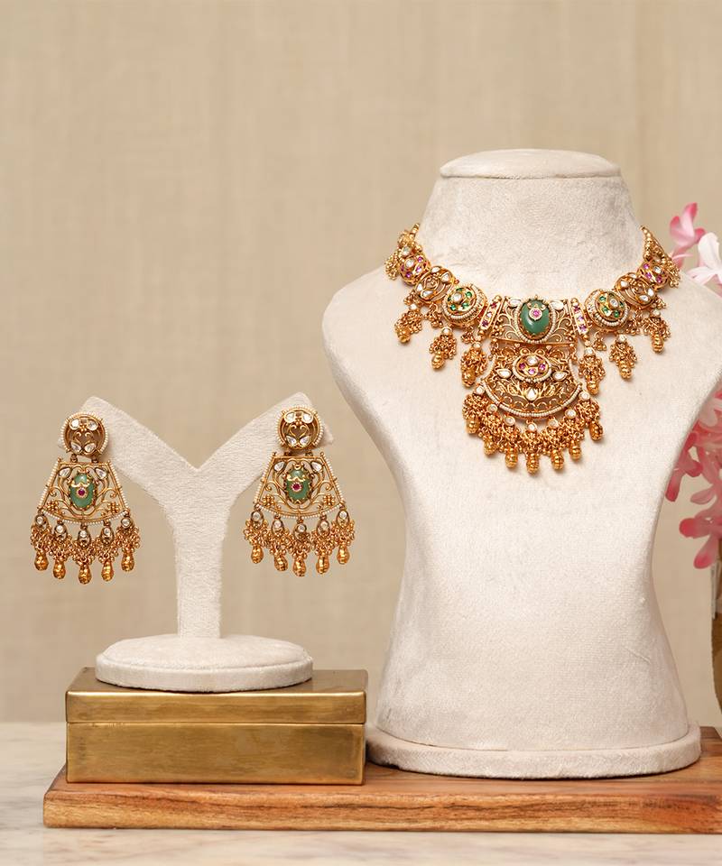 | Product Description | Gold Plated Kundan Green Stones Necklace Set Is A Regal And Elegant Accessory That Beautifully Showcases Traditional Craftsmanship. Adorned With Intricate Kundan Work And Vibrant Green Stones, It Enhances Any Ethnic Or Festive Ensemble. Perfect For Weddings, Celebrations, And Special Occasions, This Necklace Set Adds A Touch Of Sophistication And Timeless Charm.